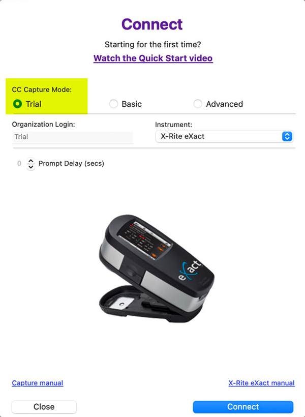 Please understand that in QuickChecker, the Trial mode is based on spot measurements only; therefore, the following instruments can be used: